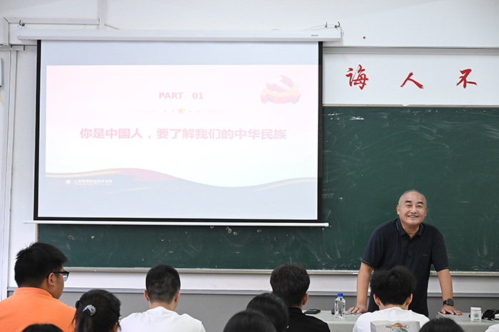 黄正校长在护理2501班和新能源2503班,以“在时代的浪潮中遇到最好的自己”为题,从民族认知、时代发展、校园新程与青春使命四大维度,引导同学们锚定人生方向、勇担时代重任,实现个人与时代发展的同频共振。 授课中,黄校长分别从四个方面展开讲授:一是溯源民族根脉,读懂中华民族的历史与荣光;二是立足时代潮头,见证中国新时代的非凡成就;三是启航思博新程,把握大学阶段的成长机遇;四是勇担复兴使命,以青春奋斗书写时代答卷。最后,黄校长寄语新生,“青春是梦想绽放的季节,奋斗是青春最亮丽的底色”,新时代青年要肩负历史使命,坚定前进信心,做到“立大志、明大德、成大才、担大任”;要让青春在为祖国、为民族、为人民、为人类的不懈奋斗中绽放绚丽之花,成长为堪当民族复兴重任的时代新人。 张辉:以抗战精神为钥,解锁大学“旅行攻略”
