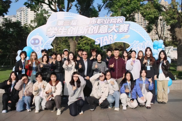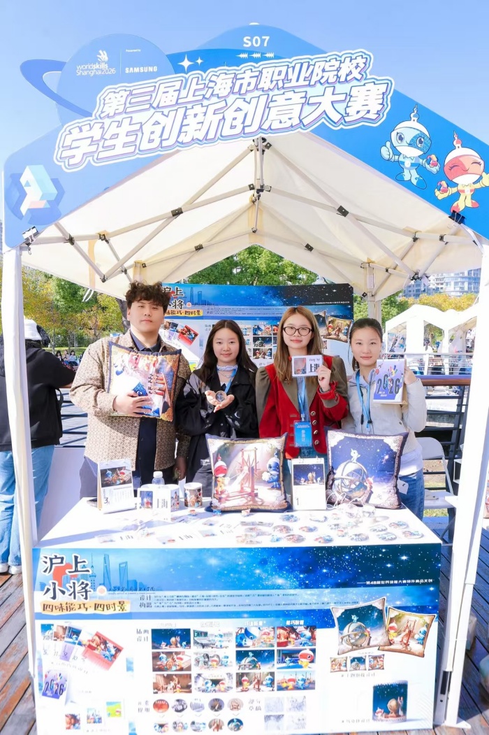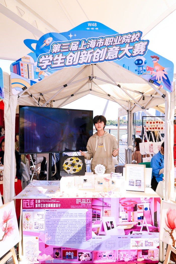 大赛自2025年9月启动以来,吸引了全市66所职业院校、1141个项目同台竞技,参赛规模较往届增长近44%。经过校级初赛、市级复赛等多个环节的严格遴选,最终学校徐悲鸿艺术学院的2个项目和智能建造与制造学院的1个项目成功晋级决赛,与来自全市61所职业院校的147支团队进行最后的角逐。 11月15日,市教委牵头在徐汇滨江组织开展大赛总决赛,决赛采用“创新集市”的形式进行集中展示和交流,以各项目团队在指定的摊位做作品展示、评委现场打分的形式进行评比。